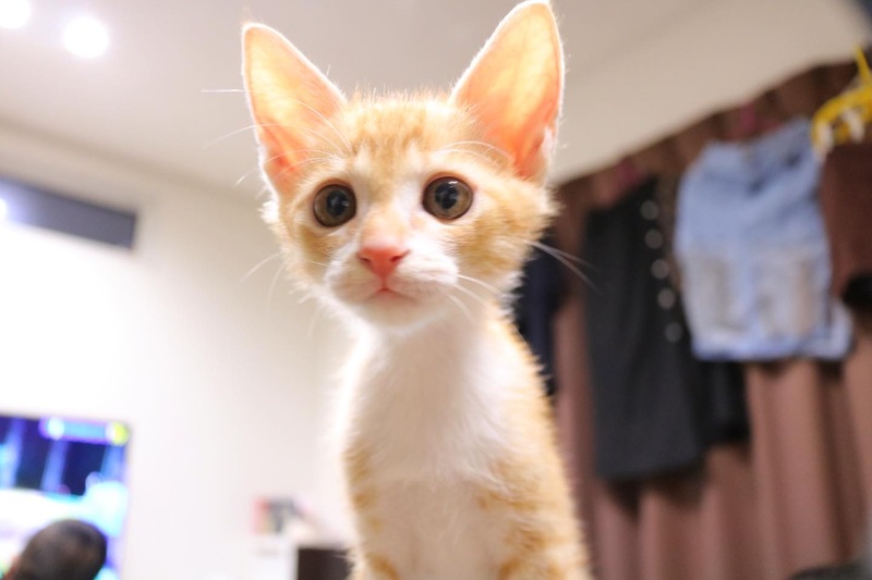 | 特徴(性格など) | 薄いオレンジのカラーで、お腹や手足などは白いです。 毛が短いですが柔らかく、とてもフワフワしていて毛並みが気持ち良いです(*´`) 耳も尻尾も形がとても綺麗です♡ 顔がとても可愛いです♡ よく食べよく遊びよく寝ます。 とても健康的な元気な男の子です! |