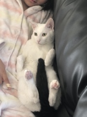 | 特徴(性格など) | クリーム白の男の子 ビビリさんで人間に触られるのがまだ怖いですが、ご飯を食べている時や、猫ベッドに入っている時は触らせてくれます♪ 我が家ではボス的な存在で、他の猫達に人気があり、みんな彼のそばにいたがります。 長いお外生活のせいで、少し顔に剣がありますが、この子の子猫だった頃の可愛いお顔を頭の中でイメージしていただけたら♡と思います♪ |