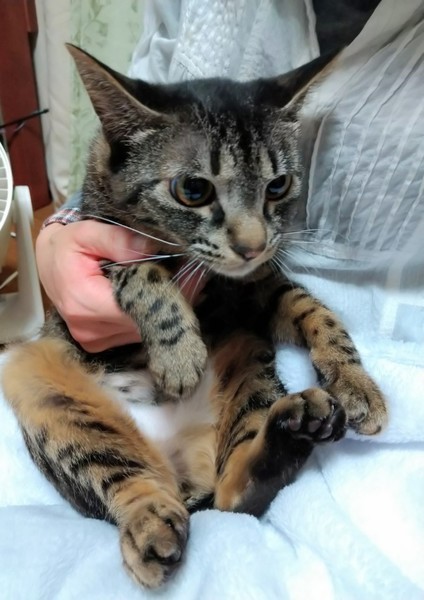 | 特徴(性格など) | ◆すみチュミちゃん 〇2020年11月に渋谷区内の住宅地で、痩せていたため保護しました。 〇1歳くらいのキジトラの女の子です。 〇尻尾は巻いた鍵しっぽです。 〇小さいので当初は子猫だと思いましたが、歯が生えそろっていました。 〇保護当時はおなかにヘルニアがありましたが、2020年12月に手術を受け、現在はほぼ完治しています。 〇毛もきれいに生えてきています。 〇保護当時1.1kgだった体重は2.4kg(2021年1月下旬時点)になりました。 〇臆病なところがありますが、とても人馴れしていて、猫も好きです。 〇活発によく動き、よく食べます。 〇ブラシやなでなでしてもらうのが大好きです。 ★ワクチン1回済み、不妊手術済み。 ★猫エイズ、猫白血病ともに陰性。 〇5/2(日)開催の譲渡会に参加予定!下記の要項をお読みの上で、ぜひ会いにいらしてください♪ ☆★☆★☆★☆★☆★☆★☆★☆★☆★☆★☆★☆★☆★☆★☆★☆★☆★☆★☆ ~5月2日(日)市ヶ尾にて譲渡会開催!~ ◎場所・・「東急ドエル市ヶ尾プラーザビル2階集会場」 神奈川県横浜市青葉区市ヶ尾町1154-2 田園都市線「市ヶ尾」駅西口より徒歩約2分 ◎日程・・5月2日(日)(雨天決行) ◎時間・・13時から16時(受付は15時30分まで) (会場に利用可能な駐車場はございません。近隣のコインパーキングをご利用ください。) *コロナ禍での開催につき、状況により入場制限し、混雑次第で入場お断りせざるを得ない場合もあることをご了承ください。 *参加の際は、マスクの着用、アルコール消毒のご協力をお願いいたします。 *当日は検温の上、体温が37度以上の方はご参加いただけません。 *混雑状況により、中止させていただく場合がございます。 ※参加予定の犬猫は体調により参加できない場合があります。ご了承ください。 ☆★☆★☆★☆★☆★☆★☆★☆★☆★☆★☆★☆★☆★☆★☆★☆★☆★☆★☆ |