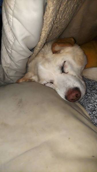 | 特徴(性格など) | 毛色は、白 中型犬で15キロ位 人慣れしています。 のんびりしたマイペースな子です。 穏やかな性格で 他のワンにゃんどの子とも仲良く過ごせています。 無駄吠えなく大人しいです。 たまに鼻を鳴らして 甘えることがあります。 散歩はあまり好きじゃないようで 短めのお散歩で帰りたがります。 高齢なので、リハビリを兼ねて散歩はかかせませんが、長い距離は体力的に難しいと思います。 高齢で膀胱炎になっていますが 治療していて、よくなってきていて 元気に過ごしています。 シャンプーも採血も大人しくできます。 とっても可愛いおじいちゃん犬です。 |