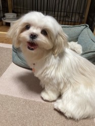 | 特徴(性格など) | ■特徴(仮の名前:まりあ) シーズーmix♀ 白茶 推定 生後6~7か月 体重3.7キロ(成長中) ■性格・暮らし ・仔犬ですので、現在様々な生活音に慣れるよう毎日経験を重ねています。 ・明るい性格のようで、人懐こく甘えます。 ・好奇心いっぱい室内を元気良く走りまわります。 ・時期的にどんなものにも興味を示すため、誤飲等の事故防止のため室内に配慮が必要です。 ・少し気の強い面もあり、他犬にしつこく接することもありますがそつなく暮らせます。 ・室内トイレの認識があり、ほとんど失敗がありません。 ・サークル内でのお留守番・就寝は苦手で練習中です。 ・お散歩はワクチン接種後より練習を始めます。 ■今までに行った医療行為 ・6種混合ワクチン 1回目(12/26) ・検便(-)(12/26) ・健康チェック (12/22) ・血液検査(12/22) ・フィラリア抗原検査(-) (12/22) ・マイクロチップ挿入(12/18) ・狂犬病ワクチン接種(12/18) ■今後行う予定の医療行為 ・6種混合ワクチン2回目(1/30予定) ・避妊手術(2月初旬予定) |