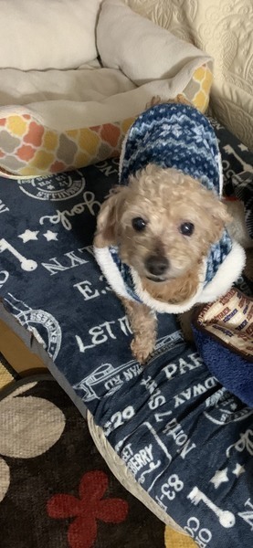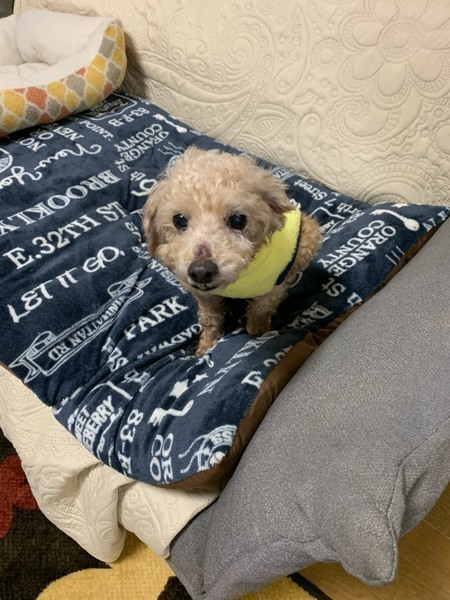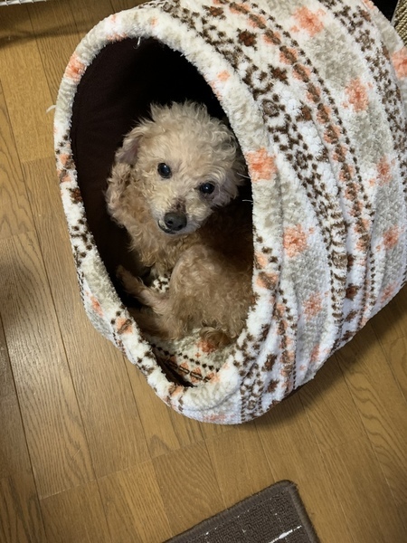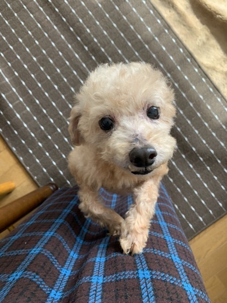 | 特徴(性格など) | トイプードル 男の子 体重4kg 誕生日はわからず推定8歳です。 左耳一部が欠損していますが、毛で隠れて見た目はあまりわかりません。 8歳とは思えないくらい活発な素音。サークルをよじ登るので、サークルの屋根は必要です。ソファーにも軽々と乗って飛び降ります。お庭に出ると、爽快に走ります。 とても人懐こく抱っこされるのが大好きな甘えん坊さん。 犬にも友好的で先住犬の後をついて真似をしています。 |