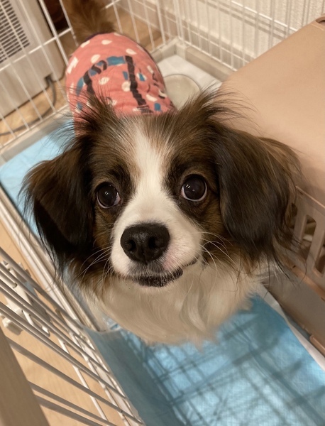 | 特徴(性格など) | ■特徴(仮の名前:うい) パピヨンmix♀推定1歳 体重9.2キロ ■性格・暮らし ・ビビリですが,人が大好きです ・トイレシートの認識があります。 ・お散歩は練習中です。 ・他犬とも卒なく暮らせます。 ・まだ若いため、これからしつけが必要です。 ・中心となってお世話する方が,60歳以下、2人以上のご家庭を希望します。 ■今までに行った医療行為 ・マイクロチップ装着 ・混合ワクチン接種 ・検便 ・避妊手術 ・血液検査 ・フィラリア検査(-) ・抜歯 ・歯石除去 |