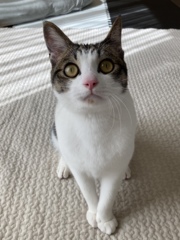 | 特徴(性格など) | 人が好きですぐに擦り寄ってきます。遊ぶのも大好きで、走ったりジャンプしたりと体力が尽きるまで動くものを追いかけます。 ただ、甘噛みや爪の出し入れのコントロールが甘く、楽しくなってくると痛いです。嫌がるとやめてくれます。 甘えるときは膝に乗るタイプではなく、体をくっつけてくるタイプです。 夜鳴きも無く、どちらかというと太陽が出てる時間の方が活動します。 1日のほとんどをケージの中で過ごしてるのでお留守番もいい子でしてくれます。 去勢、ワクチンは接種済みです。 現在、ストルバイト結晶と膀胱炎のため療法食で治療中です。どちらも数値は低めです。 療法食をお譲りしますので治療を続けてくれる方を希望します。 |