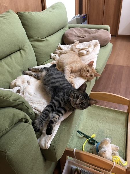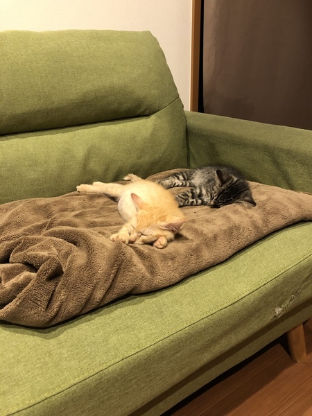 | 特徴(性格など) | 仮名は『クー』です。 保護した当時から食欲旺盛で、現在も沢山食べ、8ヶ月で6Kgあります。 抱っこ大好き、一緒に寝るの大好きな甘えん坊な男の子です。 猫とも犬とも仲良くできる子です。 ただ、元気いっぱいで迫力がある子なので、我が家の先住犬にも平気で猫パンチします。 綺麗な顔立ちをしています。 幸運をひっかけてきてくれると言い伝えのある、鍵しっぽです。 ・保護当時の画像が1枚目です(お腹がぷっくりです)→一緒に映っているのは、娘から一時的に預かった『ウミ君』です。 ・画像2枚目に一緒に映っているのは、我が家の先住猫『レオ』です。 食欲旺盛ですが、好奇心も旺盛で直ぐに誰とでも仲良くなれる性格です。 |