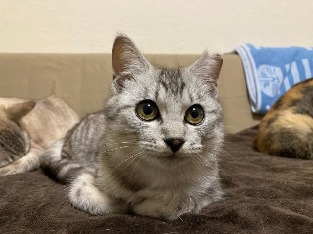 | 特徴(性格など) | ☆☆☆ご希望の方は、以下のアンケートフォームにご記入の上、送信してください☆☆☆ ねこ親希望アンケート→ http://chibawan.net/contactform_cat 【猫No】3239 【愛称】 アナ 【性別】 メス 【年齢】 推定5ヶ月(2021/1/30現在)(2020/8頃生) 【毛色】 サバ 【体重】 1.95kg (2021/1/30現在) 【状態】 ワクチン接種済(2021/1/10)、血液検査(エイズ(-)・白血病(-))、ノミダニ駆除済、トイレ習得済、不妊手術済、マイクロチップ登録済 【保護場所】千葉市 【日記】 http://sakuranouchi.blog.fc2.com/ さくらのおうち https://www.instagram.com/sakuranouchi/ Instagram 【経緯】 TNR現場からの保護 【性格】 人にも猫にも友好的で甘えん坊な女の子です。仔猫らしく良く食べて良く遊び、元気いっぱいです。多頭環境で生まれ育ち、預かり宅では他猫とも仲良く過ごすことができていますが、他猫から離れたところで1匹で過ごしていることが多いので、単頭飼育にも向いていると思います。保護されるまで外猫として暮らしていたため、大きな音や急な人の動きには時折警戒する様子をみせますが、好奇心が旺盛で適応力も高いので、月日の経過とともに警戒する場面はなくなっていくと思います。預かり宅での日常の様子はInstagramでご紹介しておりますので、ぜひ一度覗いてみて下さい。 【補足事項】小さなお子様のいらっしゃるご家庭はアナちゃんの警戒心が強く出てしまうので向かないと思います。 【その他】猫に合った生活スタイル、終生飼養、完全室内飼育、脱走防止対策、定期的なワクチン接種などの健康管理、定期的な近況報告をお約束いただけるご家族で、アンケートに快くお答え頂ける方からのお問い合わせをお待ちしております。お届けの範囲は、猫の負担を考慮して千葉市から車で90分程度の範囲を希望します。 |