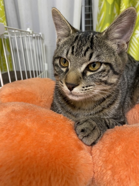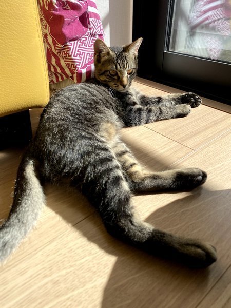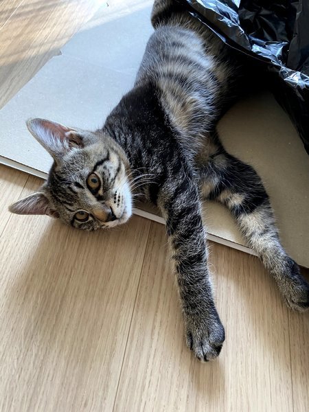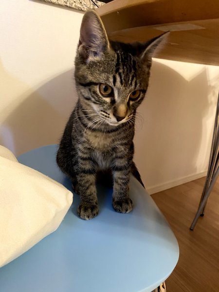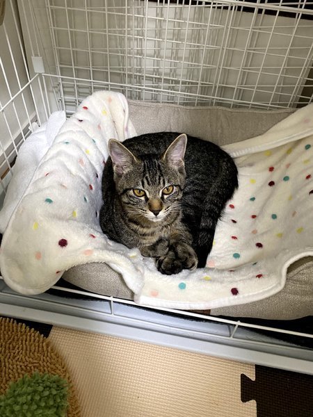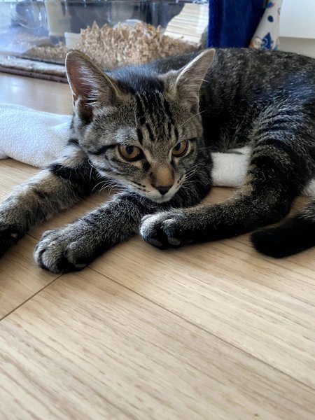 | 特徴(性格など) | 柄はキジトラです。茶色よりは黒色よりです。 顔はイケメンくん顔だと思います! 性格は、本当にやんちゃで男の子だなあって感じがします。紐が大好きで、まだ子供なので遊んで寝ての繰り返しをしています。 とても寂しがり屋さんです。居なくなるとすぐに鳴いてしまいます。長く一緒に入れる方がいいかなと思います。 興奮するとすぐ噛みたくなる癖があります。その為、小さなお子さんが居る家庭は難しいと思います。 相性次第では、多頭飼いも大丈夫だと思います。 |