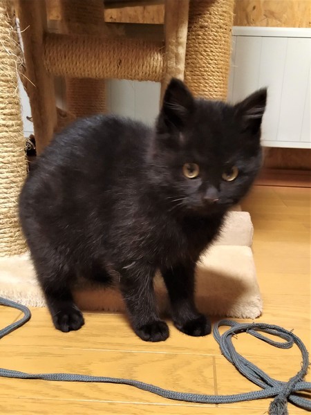 | 特徴(性格など) | 【種類】MIX 【毛色】ブラック 【性別】オス 【去勢】未 【ワクチン】済 【駆虫】済 【血液検査】未 【健康状態】食欲もあり元気です 【性格・特徴】野良の子として外で過ごしていたのでまだ人が怖くて臆病です。人の方から近づくのや急な動作は苦手でとっさに逃げちゃいますが、静かに体を撫でられるのは好きでじっとしています。ふわふわの密度の濃い毛が可愛いハンサム君です❤兄弟の信玄と毎日元気に遊びながら成長中&人慣れ訓練中なので、ゆっくりと見守っています。まだほんの子猫ですので、人の近くで生活していけば甘えっこになると思います(^^)猫には威嚇などしませんので、他の猫ちゃんともすぐ仲よくなって上手にお付き合いできる性格の子です。一緒に保護された兄弟の【信玄/しんげん】と同じ保護宅で過ごしています。 ※兄弟2匹での飼育を希望される方の応募を優先いたします。 |