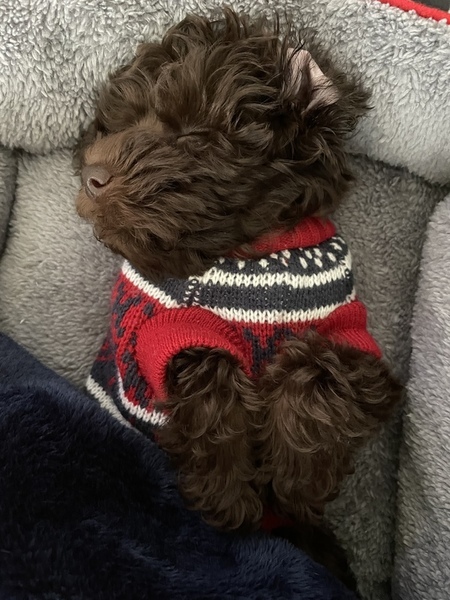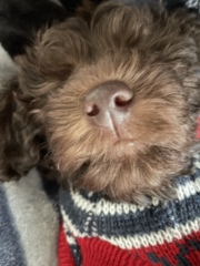 | 特徴(性格など) | ミニチュアシュナウザー×プードルのmixで男の子です。 健康チェック項目では、全てクリアしており褒められました。 カラーはチョコタンで珍しいらしく、目は緑がかった綺麗なグレーをしています。 今はまだ小さいですが、将来は3kg〜5kgが予想されます。 吠える事もなく、とてもおっとりした優しい性格で「おすわり」「おて」「まて」を約1日で覚えるお利口さんです(^^) トイレトレーニングも、短期間ではありますがしっかりしつけたので出来ます。 よく膝上でお腹を向けて寝てくれます。 夜もケージで朝まで静かに寝てくれます。 遊ぶ時は元気ですが、おっとり甘えん坊さんです^^ |