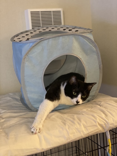 | 特徴(性格など) | はっちゃんは、タキシードを着てるような男前のカッコいい白黒の3歳の男の子です。抱っこはできませんがナデナデは少しづつできるようになってるなど慣れてきています。お留守番もできますし、おトイレも大丈夫!猫さん同士遊んだり一緒に寝たりするのが好きな子です。人間とも遊んだり、気がつくと側にそっといてくれます。他の猫さんがしてることを見て真似したりおやつやご飯で呼ぶと来る賢い子です。猫が好きな子となら仲良くできると思います。片足をトイレの淵にかけておしっこしたり、手ですくってお水を飲んだり、おしゃべりさんで独り言が多く笑顔になれる可愛い仕草がたくさん見られます。 預かり宅で預かり約半年、どんどん慣れてきています。家族として大事にしてくれるご縁を探してします。 日頃の様子はインスタグラム #ハチワレのはっちゃん で検索してください! |