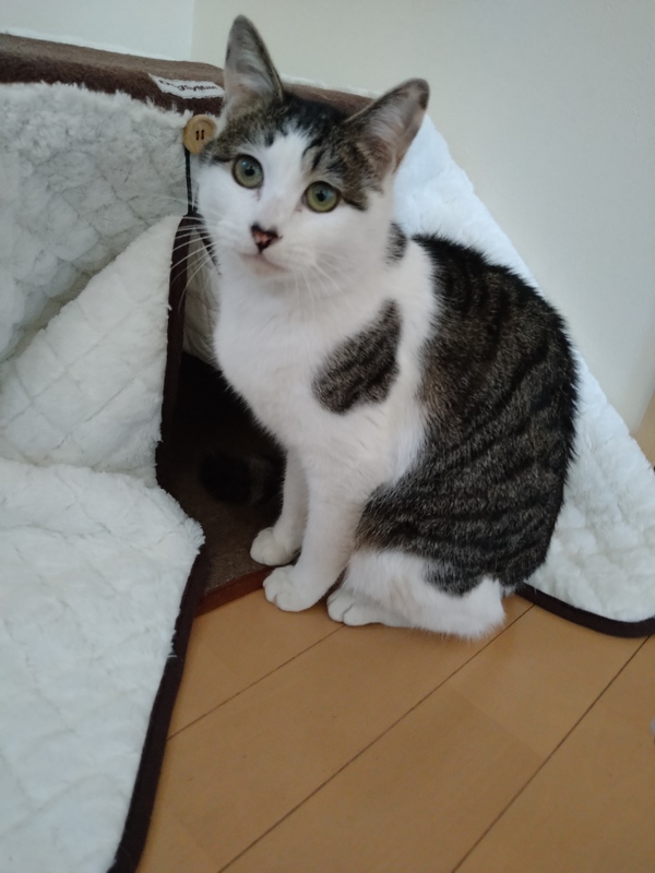 | 里親募集する理由 | ある場所に生後2.3ヶ月であらわれました。 親猫を待つもいない様子、捨てられたのと思われます。 おとなしく、懐っこいので虐待被害の恐れもあると考え保護し里親募集をすることにしました。 |