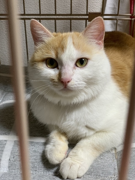 | 特徴(性格など) | 茶白で、やや毛が長めの中毛種です。 2.5キロ。小柄です。 元野良猫だった為、保護当初はシャー!シャー!怒っていました。 直に慣れ、今では甘えん坊で、抱っこすると爆音でゴロゴロと頭を擦り寄せて甘えてきます。 ケージでお世話していますが、現在フリーの訓練中です。隠れがちですが、自分から寄ってくることもあります。こちらから抱っこすればずっと抱かれてます。 まだまだ家猫修行中なこと、ご理解ください。 |