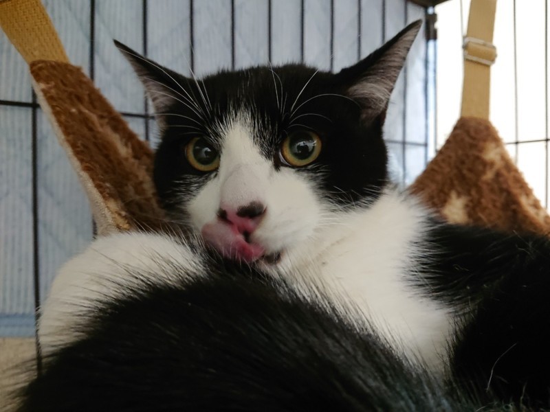 | 特徴(性格など) | 2020.6.6生まれ(推定) 毛色:黒白 ピンクのお鼻に黒い点々模様のおんぷ♪ 兄弟猫のピアノ同様、かわいいハチワレ男子です。 ピアノに比べると引っ込み思案の怖がりさん。 緊張するとシャーしてしまいますが、 手を出してきたり、噛んだりなどはしません。 おんぷなりのご挨拶です♪ ゆっくりおんぷの心を解きほぐして下さるような 里親様を募集中!! |