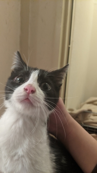 | 特徴(性格など) | 保護直後の写真など、未だすこし汚れていて 人見知りもあった為に写りが悪くてごめんなさい。 鼻先が黒く写っている写真は、保護当初ひどく汚れていたからで、とても可愛らしいピンクのお鼻 シッポもすらりと長い伸びしろ君です。 保護猫のため正確な生まれ年月日が判らないのですが 昨年12月25日に保護した際には赤ちゃん……よりは少し大きくなっている『こども』という感じでした。 推定ですが、捕獲した同日に母ネコから母乳を貰っている姿を目撃しておりますし、2ヶ月いかないぐらい?1ヶ月過ぎぐらい?だったのではないかと思いますが、素人のため、あくまで憶測です。 まだ幼いため、獣医師の指導により去勢手術を致せておりませんが、ご希望の里親様には手術後のお引き渡しで構いません。 経緯の欄に記入しましたが、他にも猫を多数飼育しているため、中々この子だけを構ってあげる事が出来ずに居るのが悲しいのですが、とても活発な子です。 ◆トイレは決められた場所できちんと出来ます、失敗は1度もありません。 ◆人間に対して恐怖心があるのか?まだ抱っこが苦手ですが、幼いため徐々に慣れるかと思います、威嚇したりはしません。 ◆掌からフード食べれます。 |