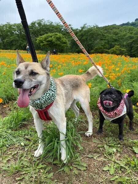 | 特徴(性格など) | 穏やかで落ち着いた賢い女の子です。 やや警戒心がありますが、環境に慣れるのは早く、慣れればお腹もみせてくれてごろごろします。 就寝時は家族のお布団の上で寝る甘えん坊さんです。 一度信頼した人間には忠誠心がありそっと寄り添ってくれる優しい子です。 家の中では大人しく寝ていることも多いですが、お散歩では推定7〜10歳とは思えないほど元気です。 お散歩が大好きで、お散歩中に出会う犬たちとも仲良く戯れて遊ぶことができます。 しかしリードの引っ張りが少し強めなのと拾い食いしてしまうので注意が必要です。 現在の預かり先での先住犬猫とは、戯れあったりまではしないけれど、仲良く過ごすことができています。 相性にもよるとは思いますが、先住犬ががいるほうが穏やかに暮らせるタイプです。 小さなお子様との生活は、現在関わることがないため不明です。 体重14kg フィラリア陽性でしたが陰転しました。 マイクロチップ済 |