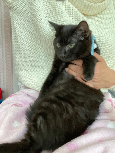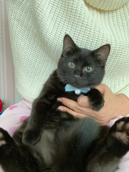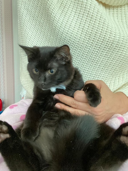 | 特徴(性格など) | 黒柄の男の子です。 1番元気いっぱいです。 トンボの猫じゃらしで遊ぶのが大好きです。 お母さん猫、4兄弟で保護しています。 エイズ、白血病検査でエイズ陽性とでました。 もちろん現在、発症はしておりません。 そして人に感染することはありません。 エイズウイルスキャリアの子でも、ストレスのない生活を送ることにより発症することなく、天寿を全うする子が多いと言われています。 できれば兄弟一緒に飼ってくれる方を希望してますが1匹でもご相談下さい。 |