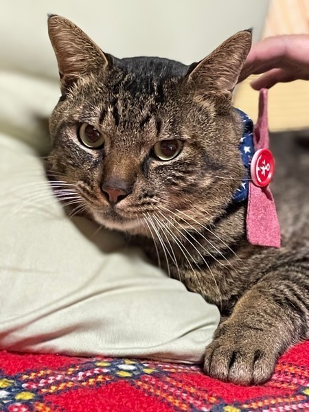 | 特徴(性格など) | キジ柄の男の子です。 穏やかな性格をしています。 少し高い声でおしゃべりしてくれるのがまた可愛いです。 飼いやすい子です。 お一人暮らしの方やシニア世代の方のご応募もお待ちしています。 |