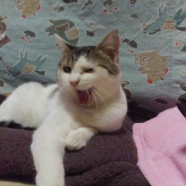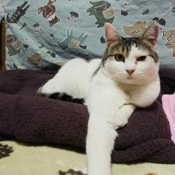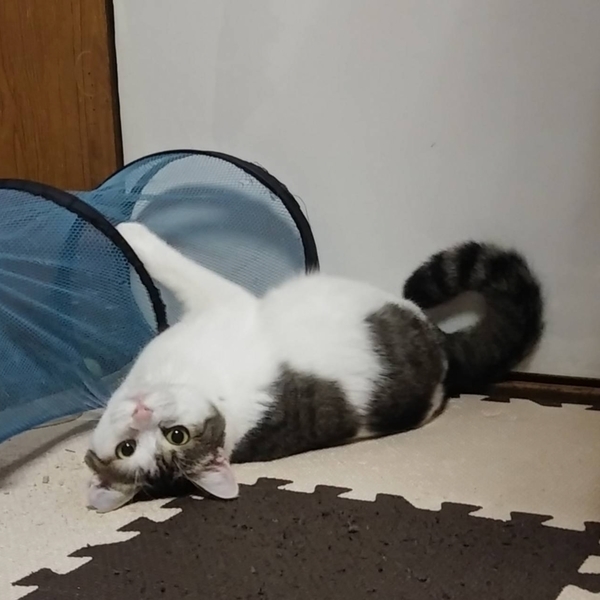 | 特徴(性格など) | 慎重なあかりちゃんは人に対してはソーシャルディスタンスを守りご飯やおやつに遠慮がちですが遊びには積極的でボールやおもちゃを追い掛け、猫友達とも仲良く出来る穏やかな女の子です。猫風邪の影響で左目に涙目が残っていますがそれ以外は健康体です。最近は、話かけると「にゃお」と可愛い声でお返事もしてくれます。 | ||