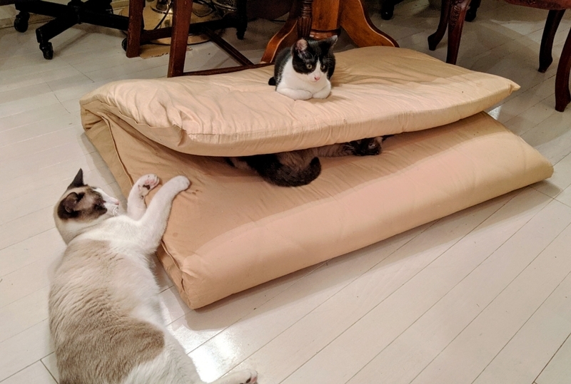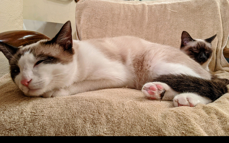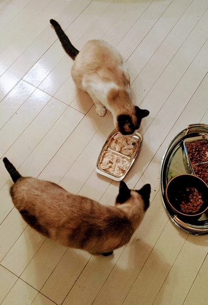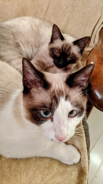 | 特徴(性格など) | うっとりするほど、とてもキレイなシャム(タイ猫)系の♂ハチワレ柄/♀ポインテッド柄きょうだいです。 手足〜シッポはすらりと長く、目は淡く透き通るブルーグリーンです。 バラバラでなく、あくまで2匹一緒に飼って下さる方を募集致します。 下記、経緯の欄に記入致した事情で2020年11月に保護したのですが、当初はとても警戒心が強く、怖がりで ゲージから出れず、ごはんも水も数日間は口にせず威嚇を繰り返し、人間が近づくと攻撃して来る等…これではとても飼い猫にはなれるまい…動物病院での健康診断〜避妊去勢手術を施した後はリリースしか無いだろうと諦めておりました。 しかし、まだ幼かったため、いつもお世話になっている獣医師からは「もう少し大きくなってからの手術の方が安全」と指導を頂き また例年にない寒波の冬であった事と、たまたま当方の所属する事業所の一部に新型コロナウイルス感染症予防対策として使用しなくなった部屋がありましたので、まずはそこで当面の保護と致す事にして様子を見ながら3ヶ月経過して現在に至って居ります。 ◆最初の1ヶ月は→ほとんどゲージから出れないような状態〜運動不足になるといけないと思い、管理人の居ない間は事業所内の一部屋を自由にさせて過ごしていました。 (人間の居ない間は部屋中走り回っていたようですが)人間に対して強い恐怖心?威嚇と攻撃を繰り返しました。 ◆続いて2ヶ月目→姿を見せるようになるものの、近づくと威嚇…しかし攻撃はしなくなりました。 ◆そして3ヶ月目→今では人間(保護者)の気配を察知するなりシッポを立ててすり寄って来ます。人間(保護者)大好き!「もっと撫でて」「あそんで」「抱っこして!」といった感じで、まさかこんなに変わるなんて思いもしなかった事です。 これはもしかして、いやきっと立派な飼い猫としてやっていける。 もしも、万に1つのチャンスでも、可能性が0でない限りはと思い、この度の募集とさせて頂きました。 元がノラのため、厳密な生年月日は分らないのですが昨年6月ぐらい?に、ヨチヨチ歩きのような幼さで母ネコと行動を共にしていた様子を近隣の方が目撃し、撮影しています。 また、募集者も7月初め頃にお腹をすかせた母ネコ(+今回の子供達)と遭遇し、猫用おやつを与えて食べたところを撮影していますので、推測で5月中〜末頃生まれだろうかと考えていました。 いつもきょうだいで力を合わせて来たのでしょうか?とても結束が固く 四六時中いっしょに遊び、眠り、舐め合い、ごはんも仲良く分けて食べます。 その姿を見るにつけ『どうか、きょうだい一緒に飼ってくれる人を』と熱望致しております。 ※既にオス♂(ハチワレ柄)の方は去勢手術済み。 ※メス♀(ポインテッド柄)も近日中に避妊手術を予定しております。 ◆トイレトレーニング済み、というより保護当初からトイレの失敗は1度もありませんでした。 ◆何故かオスの方が人慣れしていて抱っこも好きです、ポインテッドのメスも触る事は可能ですが、現時点で抱っこにまだ恐怖心が強いようです。 この自粛期間もあり、ほとんど保護者としか接していないため人見知りあるかも知れませんが まだ幼い事もあり、伸びしろだけと感じています。 |