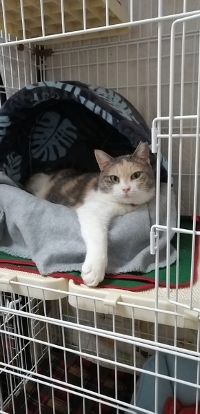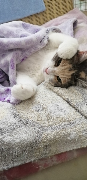 | 特徴(性格など) | 長らく地域猫として暮らしてきたみーたん。 お外で暮らしていたとは思えないほどの甘えん坊( *´艸`) お膝大好き、ブラッシング大好き、オモチャ大好きですりすりゴロゴロ甘えます。 ブリティッシュ風の半長毛三毛猫でふわふわモコモコ、手足の短いずんぐりむっくり体型です(笑) 猫によっては合わない性格の子がいますので、なるべく一匹で飼って頂きたいです。 お留守番が少な目の、静かなおうち希望です、今まで甘えられなかった分、沢山甘えさせてあげてほしいです。 日々の様子をブログに載せています。 良かったらご覧くださいね。 https://ameblo.jp/mari800922/ フードは6歳になりますので腎臓などに配慮した食事を与えています。 獣医師と相談の上、継続して与えて頂けたらありがたいです。 (1.5キロ3500円ほどです) |