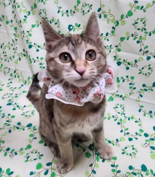 | 里親募集する理由 | 生後2週間ぐらいの目も開いていない月齢でビニール袋に兄妹4匹入れられ歩道に放置されていたため保護しました。 | ||