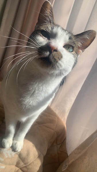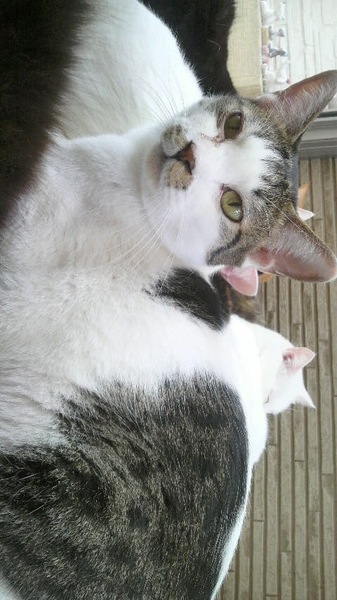 | 特徴(性格など) | 白ベースに黒模様の男の子です。黒の模様でとても綺麗なハートマークが体に大きくあります。 性格はめちゃくちゃ甘えん坊のかまってちゃんです。 多頭崩壊から保護された猫ちゃんで、その時の後遺症から片目から涙がにじみ出てますが、特に日常生活に心配はありません。 |