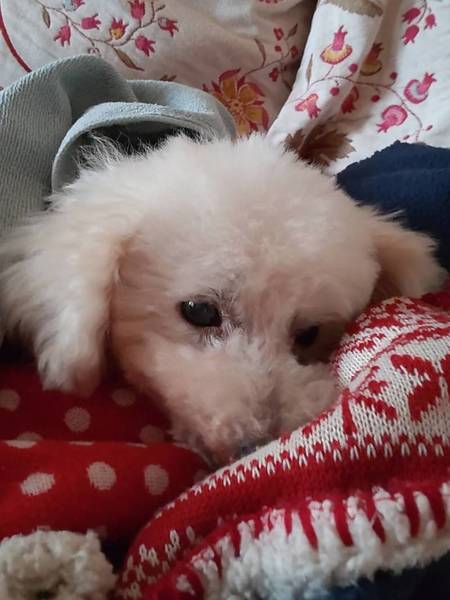 | 特徴(性格など) | ■特徴(仮の名前:ビアンカ) トイプードル ♀ 推定9~10歳 体重4.7キロ ■性格・暮らし ・明るい性格で人が大好きな甘えん坊です。 ・犬とは問題なく一緒に過ごせます。 ・身体のどこを触っても大丈夫です。 ・トイレ、お散歩は練習中です。 ■今までに行った医療行為 ・避妊手術 ・血液検査 ・混合ワクチン接種 ・歯石除去(抜歯) ・フィラリア抗原検査(-) ・マイクロチップ装着 ・検便 ・耳ダニ検査(-) |