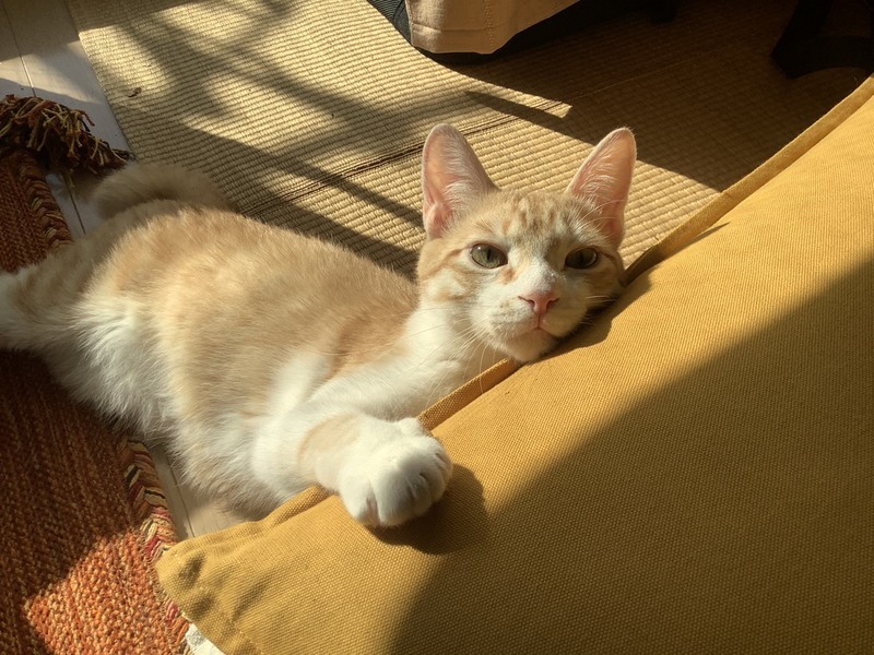 | 特徴(性格など) | 食いしん坊でよく遊ぶ元気いっぱいの男の子です。 少し億秒で、ちょっと逃げる時もありますが預かりさん宅では一カ月たたないうちに撫でるとゴロゴロしだしました。 根気よく慣らしてあげれば問題ないと思います。 おやつと猫じゃらしがあると走って寄ってくるので、たくさん遊んであげてください。 チュールがあるとお膝にも乗ってくる食いしん坊ぶりが微笑ましいです。 |