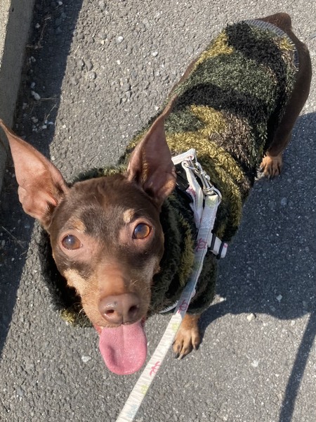 | 特徴(性格など) | 『2021D-021』ミニピン♀ミニー ◆預かりブログ◆ ※ご応募前に必ずお読みください。 2021.2.13~ https://ameblo.jp/naaaaata111/theme-10114324641.html ~2021.2.13 https://ameblo.jp/coconeel-azu/theme-10112289394.html ◆特徴◆ 【保護経緯】繁殖屋放棄犬 【保護日】 2021.2.5 【仮名前】 ミニー 【性別】 ♀ 【犬種】 ミニピン 【年齢】 6歳 (2014.11.2生) 【毛色】 チョコレート&タン 【体重】 6.1kg ◆性格・日常◆ 【性格】 慎重派で慣れるのに少し時間がかかりますが、甘えん坊です。 【トイレ】 トレーニング中。 【お散歩】 トレーニング中。 【留守番】 ケージで出来ます。 【就寝時】 ケージで出来ます。 【お手入れ】 問題なく出来ます。 【犬との関係】相性あり 【猫との関係】不明 【人との関係】初めは警戒しますが、甘えん坊です。 【その他】 ◆これまでに行った医療◆ 【混合ワクチン】 済み 【フィラリア】 陰性 【血液検査】 問題なし 【体内寄生虫】 陰性(駆虫薬投与済み) 【避妊去勢手術】 済み 【スケーリング】 済み(抜歯済み) 【マイクロチップ】挿入済み 【体外寄生虫】 投薬済み 【その他】 ・保護時より脱毛箇所(痒みあり)(経過観察中) ◆今後行う予定の医療◆ なし ◆必要な継続医療◆ なし ◆募集範囲◆ 神奈川県横須賀市より1時間範囲内 ◆預かり場所◆ 神奈川県藤沢市 【単身者】 可(お留守番の短い方、要後見人) 【高齢者】 不可 |