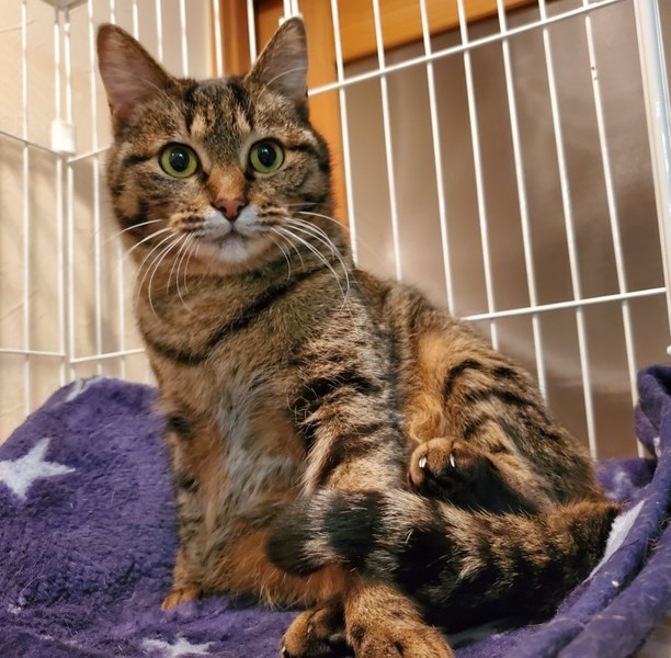 | 特徴(性格など) | とても怖がりのキジトラの女の子です 他の猫が新しく来ると怒っていますが 一緒に寝てくれる優しい子です さわろうとするとパンチが出ますので いつも皮の手袋をして撫でています 撫でられるのは好きそうなんですが怖いのだと思います 山に捨てられ、過酷な環境で子猫を育てていました 子猫は里親様が決り 大変な思いをした母猫を山に戻せないため 里親様を探しています |
