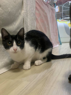 | 特徴(性格など) | ☆★☆★現在お見合い予定がございます☆★☆★ 仮名を『ペンネ』と言います。 センター収容猫です。 シンメトリーなハチワレと、すらっと長い尻尾の持ち主。 兄妹で保護されましたが妹(姉)は一足先に出逢いがあって、幸せな家猫生活を送っています。 次はペンネの番です。 控えめで自己主張があまりないのですが、猫には老若男女友好的で、スリスリと寄って行ったり積極的です。 人間に対しては臆病でまだ、どうしよう....の気持ちが前面に出てしまいますが、ゆっくりとペンネのペースで見守っていただけて、安心がわかれば、ペンネの中の甘えたい気持ちを、もっと上手に出せるようになると思います。 仲良しな仔と二頭一緒のお迎えも大歓迎。 もちろん、ペンネだけに愛情を注ぎたいという方も、先住猫さんがいらっしゃる方でも喜んででございます。 ビビリなペンネのことを、ドーンと構えて受け止めていただけます方に。 可愛いペンネに会いに来てくださいね。 【医療処置情報】これから実施のも含まれます *健康チェック *3種混合ワクチン接種 (年1回定期的にしております。詳細はお見合い時にお知らせいたします) *ウイルス検査実施(FIV.FeLV共に陰性) *検便実施 *駆虫薬投与(レボリューション、ドロンタール) *マイクロチップ装着 *不妊・去勢手術 |