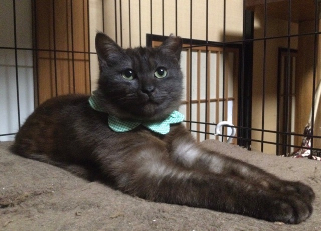 | 特徴(性格など) | ☆☆☆ご希望の方は、以下のアンケートフォームにご記入の上、送信してください☆☆☆ ねこ親希望アンケート→ http://chibawan.net/contactform_cat 【猫No.】3247 【愛称】グリン 【性別】オス 【年齢】推定6ヶ月(20/08頃生)(21/02/15現在) 【毛色】ブラックスモーク・真っ直ぐの長尻尾・さくら耳 【体重】2.5kg(21/02/15現在) 【状態】ノミダニ駆除済、駆虫済、トイレ躾済、ワクチン接種済(21/02/02)、血液検査済(猫エイズ(ー)、白血病(ー))、去勢手術済、マイクロチップ装着済 【保護場所】野田市 【日記】http://instagram.com/kemikemi1206 インスタグラム 【経緯】TNR現場から保護されました。 【性格】洋猫の血が入っていると思われる、ブラックスモークの毛並みと わずかにグリーンがかった瞳が美しい、整った顔立ちの美猫です。 被毛はダブルコートのように密に生えており、ふわふわの撫で心地です。 保護当時 全く人馴れしておらず、餌やりさんでも触ることができませんでしたが、根気よく話しかけ続け、一ヶ月を過ぎた頃から人馴れが急速に進みました。 現在、ケージの中では撫で撫でをせがんで喉を鳴らすまでに馴れました。 元来とても甘えん坊で、好奇心の強い子なのだと思います。 頭も良く、人の動きをじっと観察して預かり宅の日課を理解し、それに合わせようとする行動(時間になると進んでケージに入るなど)もみられます。 しかし、人との関わりが全くなく、お外で暮らしていた子です。 人の急な動きや、知らない人間の出入りは警戒しますので、グリンを怯えさせないよう、充分環境に配慮して下さるご家庭を希望します。 最初は必ずケージから馴らし、信頼関係が築けよく懐くまで ケージから出さないで下さい。 馴れないうちにケージから出してしまうと、家庭内野良となってしまい 人馴れが進まない可能性があります。 超多頭飼育の出身らしく、猫が好きで 預かり宅の先住猫を恋しがって追いかけます。 先住猫がいても問題ありません。 預かりの印象ですが、小さなお子さんのいらっしゃらない、大人だけの落ち着いた雰囲気のご家庭がグリンには合っているように思います。 グリンは、まだまだ育ち盛りで日々目まぐるしく成長しています。 グリンの人馴れしていく過程や育猫についての悲喜こもごもを、インスタグラムにアップしています。 グリンの性格や、家猫修行に励む日々の様子が垣間みえますので、是非ご覧下さいませ。 【その他】完全室内飼育で終生愛情を持ち、グリンに合わせた生活スタイルで暮らしてくださる方、定期的なワクチン接種や、その時々において必要な医療処置等の健康管理を約束していただける方からのお問い合わせをお待ちしております。 可愛いグリンに会いに、預かり宅までいらして下さい! ※ 大変申し訳ないのですが、猫が幼齢のため、58歳以上のみの世帯の方からのお申し込みはお断りすることがございます。 |