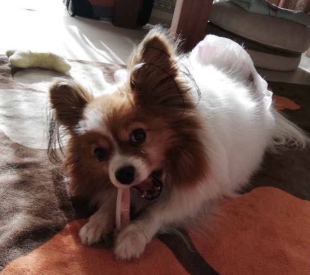 | 特徴(性格など) | ■特徴(仮の名前:ふたば) パピヨン♀ 推定4歳 体重4.6キロ(要ダイエット) ■性格・暮らし ・明るく活発で甘えん坊です。 ・体のどこを触っても大丈夫です。 ・トイレの練習中です。 ・お散歩は大好きです。 ・ケージでお留守番・就寝ができます。 ・活発な為、床にマットや絨毯を敷いて足に負担のないようにしてくださる方を希望します。 ■今までに行った医療行為 ・フィラリア抗原検査(ー) ・混合ワクチン接種 ・検便 ・血液検査 ・避妊手術 ・歯石除去・抜歯 ・マイクロチップ装着 ■今後行う予定の医療行為 なし |