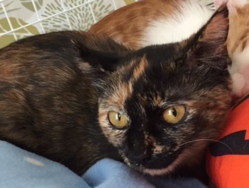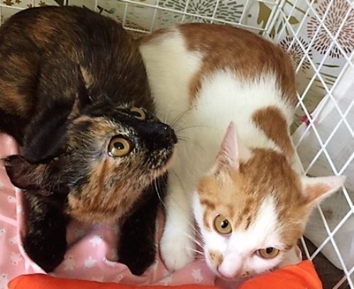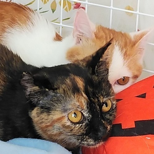 | 特徴(性格など) | 【仮名】キキちゃん 【性格】特徴的な顔立ちのキキちゃん♪ お兄ちゃんのトトくんが大好きで、いつもくっついています。 サビちゃんにしては、おしとやかで、まだ少しビビリですが 二匹でよく遊んで元気に飛び回っています。 抱っこも好きなようで、離れると人の顔を見ているので 本来は甘えん坊だと思います。 里親様の愛情でもっともっと抱っこ大好きな ベタ馴れにゃんこにしてあげてください♪ 兄妹のトトくんとのお迎えをお願いします☆ ※1ピキ譲渡不可 |