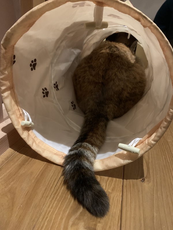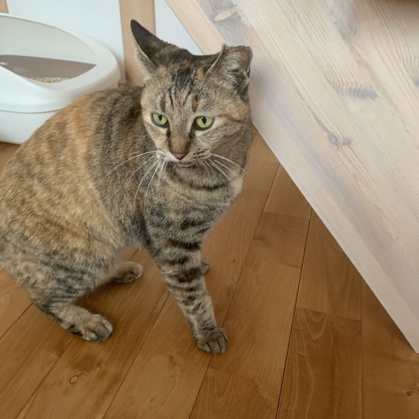 | 特徴(性格など) | 茶トラとキジトラのハーフ&ハーフのようなとっても個性的な柄の女の子です! 少し控えめで大人しい性格ですが、ご飯の時間だけは人(猫)が変わります!笑 くれくれアピールが凄いですっ( ̄▽ ̄;) トンネルとダンボールハウス、おもちゃ遊びが大好きです! 桜耳カットあり 白血病エイズ共に陰性(2020,12検査済) |