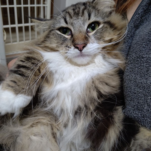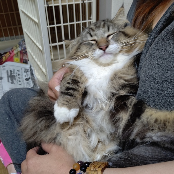 | 特徴(性格など) | 突然手を出したりすると、びっくりする事もありますが、基本的には人懐こくて甘えん坊な3歳のノルウェージャンの男の子です。 なでなでも、とても好きなようです 胸元の毛が擦れて薄くなっていますが、動物病院での診察では問題ありません。写真4枚目参照してください |