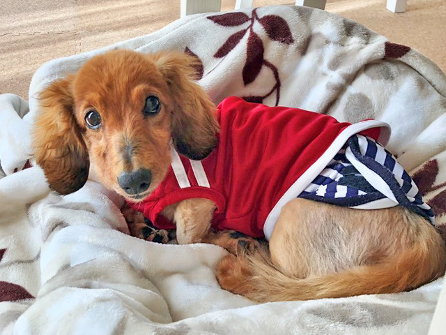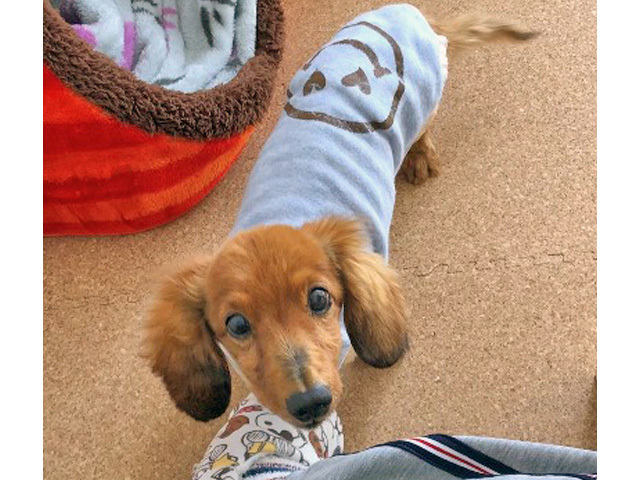 | 特徴(性格など) | ■ 基本情報 ・管理番号 【210121-03】 ・犬種・性別・名前(仮) Mダックス ♂ てっくん ・年齢・体重 推定10歳 体重 4.0kg ・特徴 毛色は茶色で小ぶりのダックス男の子です。 ・性格 甘えん坊でおだやかな子です。 ■ 暮らしについて ・日常過ごす場所 普段は室内フリーで過ごしています。食事時と就寝時はケージに入ります。 ・トイレ 室内でも屋外でもします。室内トイレは現時点ではあまりできません。 ・散歩 足腰が弱っているため、少しずつ慣らしている段階です。 歩くことはできますが、人に合わせてお散歩するということはあまり経験がないように見えます。 ・お留守番 フリーで問題なくできています。基本的にはいたずらなどもありません。 少し吠えるときもありますが、継続して吠えることはありません。 ただ、サークルなどに入れられて人がいなくなることに不安があるようです。 留守番時以外でもサークルに入れられて人が見えなくなると、人を呼ぶように吠えます。 ・外出 車酔いもなく、ドライブも問題ありませんが、車に残されると不安なようで少し吠えます。 ・お手入れ シャンプーやブラッシング、耳掃除など素直にさせてくれます。歯みがきは練習中です。 ・他犬との関係 散歩で会う犬には少し控えめに後ずさりしますが、特別問題ありません。 ・人との関係 人懐っこく、知らない人にも警戒心もないのですが、 その反面、あまり自分からべたべたと甘えてくることもありません。 以前の環境であまり人にかまってもらえていなかったように見受けられます。 自分から抱っこをせがむようなこともありませんが、抱っこをすると嫌がることもなく体を預けてくれます。 また、甘えの素振りなのか、洋服を噛んでくることがあります。 凶暴性は全くありませんが小さなお子様がいらっしゃるご家庭にはあまり向いてないかもしれません。 ・お願いしたいこと 以前の環境で閉じ込められていたのか、足が不安定です。少しずつ筋力アップをお願いします。 パテラのグレードが左右1です。滑らない床の工夫をお願いします。 また同様の理由で、サークルに入れられて人が部屋からいなくなると不安になって吠えます。 人が居れば、就寝時などサークルでも問題なく過ごせます。 ■ 医療管理について(実施日) ・混合ワクチン 〇 5種(1/14) ・狂犬病予防注射 × (近日接種予定) ・フィラリア抗原検査 - (陰性)(1/14) ・不妊手術 〇 (1/26) ・マイクロチップ 〇 (1/26) ・健康チェック 〇 (1/21) ・スケーリング 〇 (1/26) ・便検査 ・その他の医療措置 駆虫ドロンタール(1/14) 精巣、精管炎症のため、去勢手術後に抗生剤3週間服用完了 ・必要な継続医療 特になし ・現在の一時預かり先 千葉県白井市 ・預かりスタッフ ansaku ・預かりブログ 犬、ときどき猫(2021/1/28~) ・http://ansaku.blog39.fc2.com/ ・引取時の様子 ・http://chibatarianna.jugem.jp/?eid=6862 |