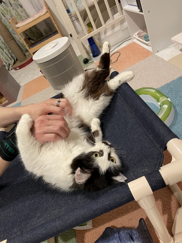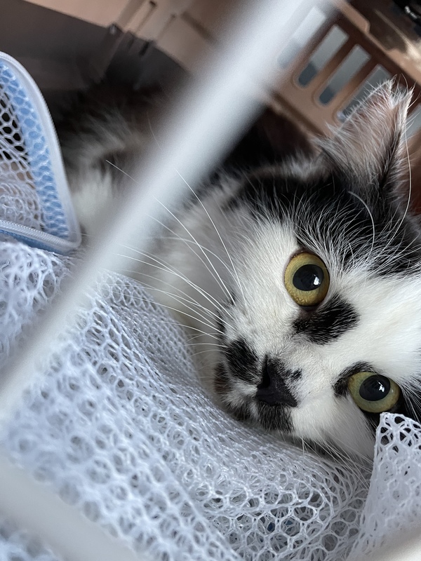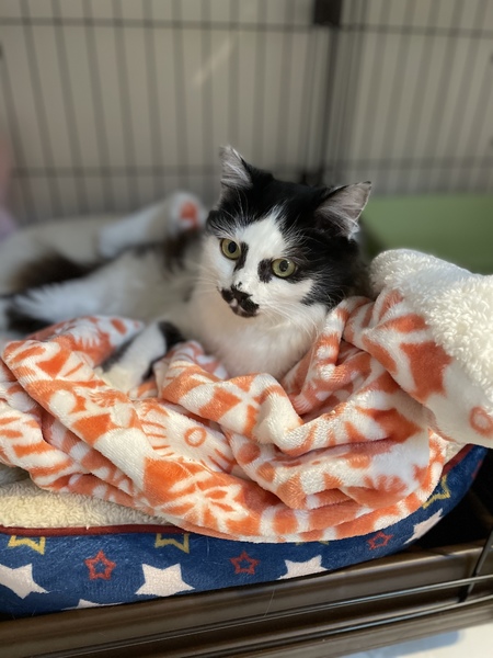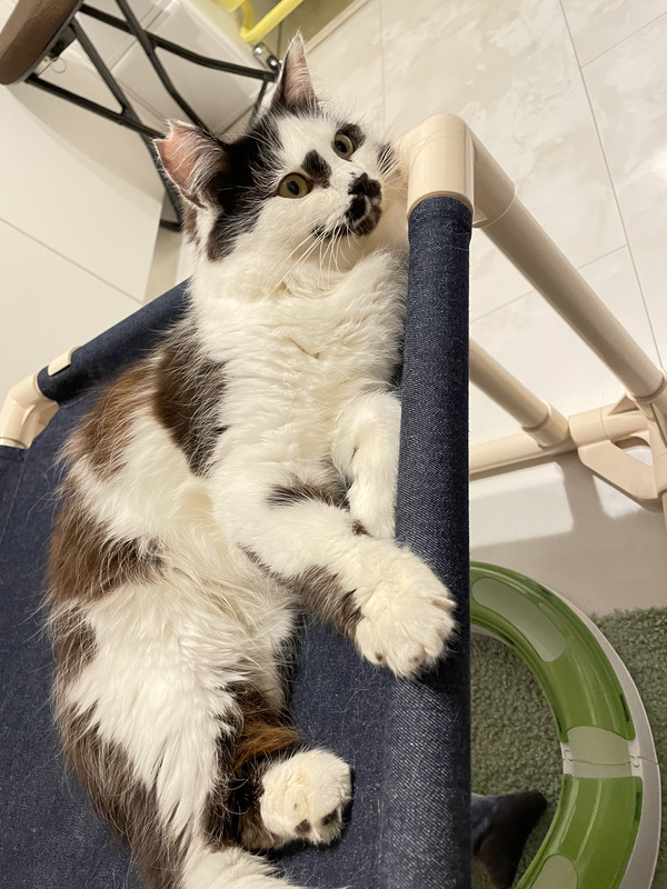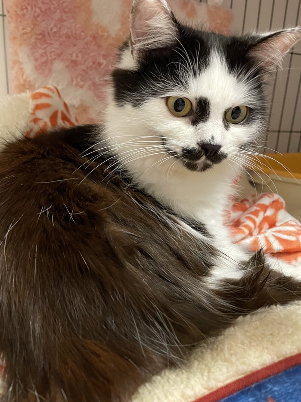 | 里親募集する理由 | 多頭現場へTNRのため介入、去勢手術時に栄養状態不良がみられ、緊急保護となりました。 インパクトのあるお顔で、すっかり成猫だと思いこんでいましたが、2020の春頃生まれの仔猫でした。 半長毛のため、見た目にはわかりにくいですが、保護当初は背骨にはっきり触れるほどガリガリでした。 日ごとに回復していき、実はとっても甘えん坊なことが判明!お膝に乗ったり抱っこが大好きで、喉を鳴らして気持ちよさそうに甘えてくれます。 このまま室内で、幸せに暮らしてほしいと願い里親様募集させて頂くことにしました。 |