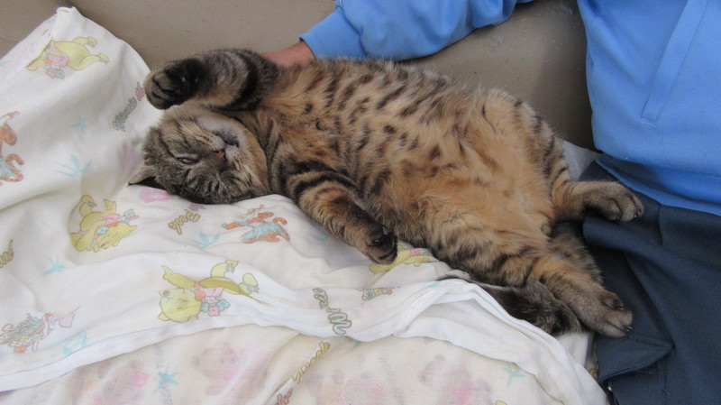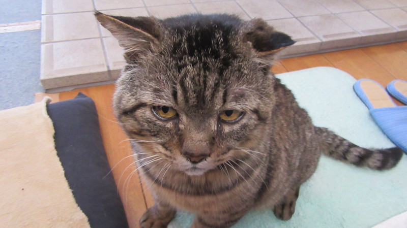 | 特徴(性格など) | ◆性格や特徴 スコテッシュホールド(立ち耳)13~15才位 男の子です。 【現状】 ●フロントライン(虫落とし)済み ●未去勢ですが、非常におとなしいです。女の子4匹と一緒に生活していますが、まったく興味を示しません。 ●スプレーもしません。 ●歯が1本しかないので、カリカリは丸呑みします。レトルト1袋(70g)を朝・昼・夕の3回で8割程度食べて、後は少しずつ完食するまで食べる感じです。テリーヌが大好きです。食欲は旺盛です。 ●階段はゆっくりと少しずつなら登れます。 ●ゲージは苦手。昔(保護される前)を思い出すのか、パニックになります。 ●人間の言葉を理解できる。 ●リラックスして、ヘソ天で寝ています。1日の内20時間位寝ています。 |