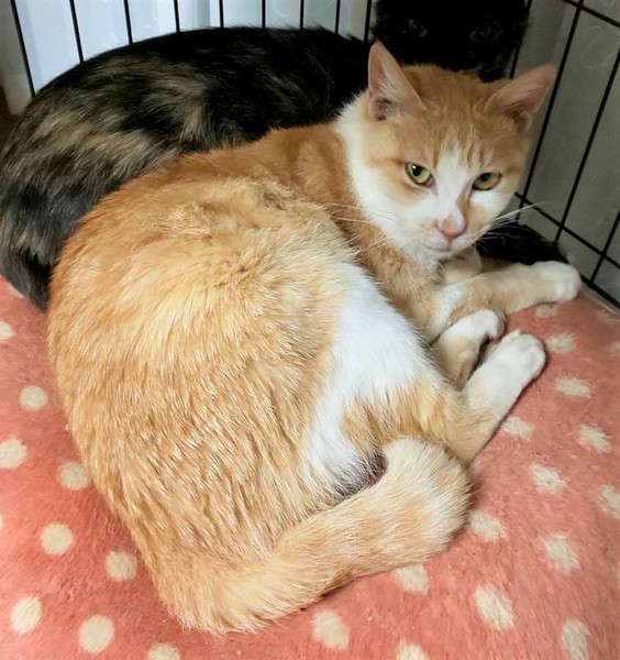 | 特徴(性格など) | 【猫の仮名】 タルト 【毛色・柄】 茶トラ+白(担当者 桂) 珍しい茶白の女の子です。 とても澄んだ瞳をしています。 撫でられるのが大好きで、もっと撫でて~と催促してきます♪ 居るだけで癒しになります。 兄弟のビスケ君が大好きで、いつもピッタリとくっついています。 2匹いっしょに迎えてくださる方を希望します。 |