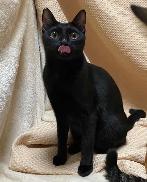 | 特徴(性格など) | 【仮名】ポポくん 【性格】マックロツヤッツヤなポポくん♪ とにかく黒光りがハンパないっス(笑) しなやかな獣的ボティと相まってまるでボディビルダーみたいなんす♪ ※実は白パン履いてますよ(笑) でもちゅ~るには目がないぼくちゃんです(笑) 里親様の元でもっともっとベタ馴れにゃんこに教育してあげて下さい♪ ※1ピキ譲渡可 |