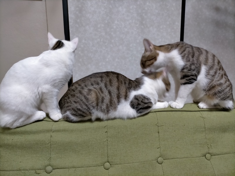| 里親募集する理由 | 生後1ヶ月位の子猫3匹がさ迷っていた所を保護しました。保護後、すぐに病院に連れて行き検査治療をしてもらい、現在は元気に過ごしております。( ※シロは譲渡済みです ) ですが現状、保護している自宅での継続保護が難しくなってきております。その為、取り急ぎ、こちらに投稿した次第です。 どうか元気いっぱいの猫達を命尽きるまで家族として大事に育てて下さる方、ご連絡お待ちしております。 |