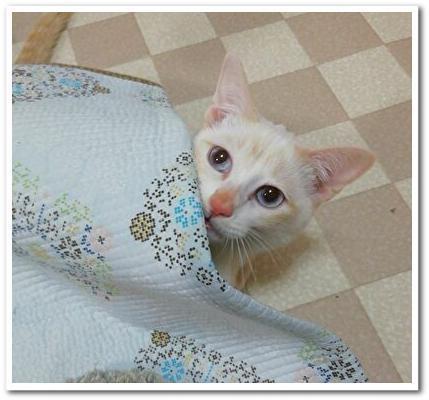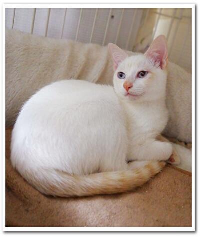 | 特徴(性格など) | 薄いブルーの目がとてもキレイな女の子です★ 大人しそうに見えますが、毎日飛んだり跳ねたり元気いっぱい、 お喋りも上手なゆきちゃんです(^▽^)/ とにかく人が大好き、人にくっ付くのが大好きな子です♪ おとな猫とも仲良く出来ます♥ |