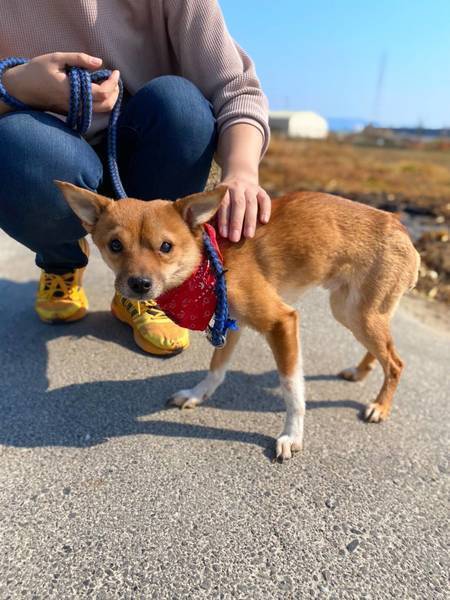 | 特徴(性格など) | チワワと豆柴のミックスの仔犬です。多頭飼育崩壊で、ご飯ももらえないまま数日いたところを3日かけてやっと保護しました。 うるうるした瞳と大きな耳、まるで小鹿のバンビみたいにとってもかわいいワンちゃんです。 現在、3キログラム。一緒に保護されたわんちゃん達が5キロぐらいですので、成長してもそんなに大きくはならないと思われます。 |