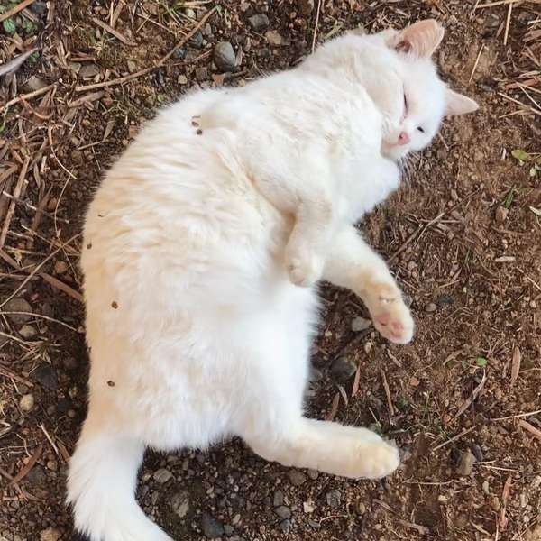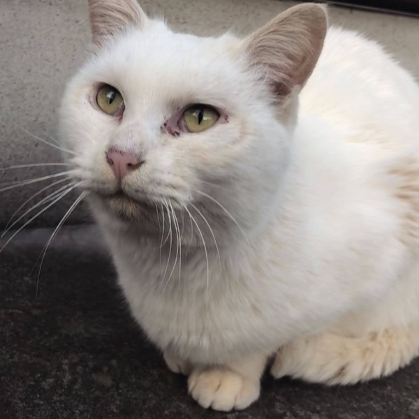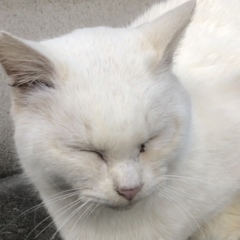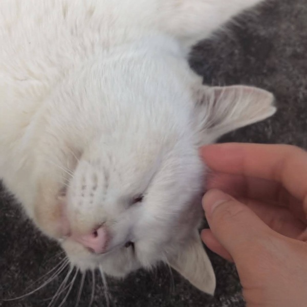 | 特徴(性格など) | とても人懐っこいオス白猫です。耳カット猫です。 推定3歳未満です。 ライムグリーンの瞳です。 脇腹あたりが少し薄らと茶色いです。 今は冬毛でふわふわしています。 肉球はかわいいピンク色です。 尻尾は太めです。 どこを触っても怒りません。頭も体も尻尾も触らせてくれます。 シャンプーシートも平気です。 にゃー、にゃー、とおしゃべりをするのが好きです。にゃーというときに口角をきゅっと上げて鳴きます。 構ってほしいときに、ふみふみをしたり、ごろんとひっくり返ったりします。 好きな猫や好きなひとに、すりすりや頭突きをします。 お腹が空いていると、後ろにずっとついて歩きます。 ごはんはなんでも食べます。 以前は友達の積極的な性格の白猫と共に地域で暮らしていました。 面倒なことを友達に任せるような、ちゃっかりしたところがあります。 |
