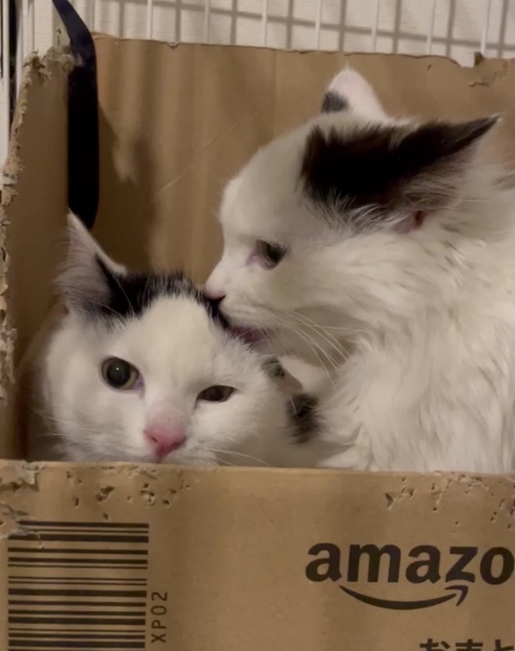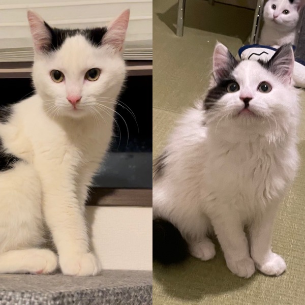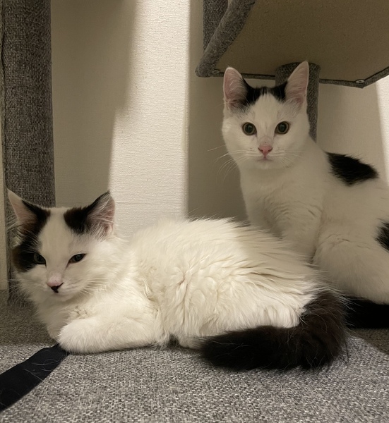 | 特徴(性格など) | 【シリウス】 白黒長毛の男の子。 フサフサしっぽの中身は幸せのカギしっぽ。 【オリオン】 白黒ぶちの男の子。 中途半端な長さのカギしっぽ。 お腹に♡マークあり。 シャー!と威嚇し、逃げることもありますが、触れるし、撫でられます。シリウスは撫でていると、ゴロゴロ喉を鳴らしたり、コロンとお腹を見せてくれます。オリオンはまだ警戒心が強いですが、ふたりとも少しずつ馴れてきています。 時間をかければ、必ず馴れてくれます。 |