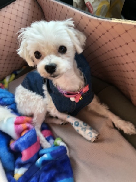 | 特徴(性格など) | マルチーズ 女の子 体重2.2キロ レスキュー当初、毛玉が足を圧迫していて、骨まで壊死した状態でした。 今投薬と毎日の手当で、少しずつ落ち着いてきていますが、 骨は再生しない為、右前足は機能しない可能性が高いですが、 3本足で上手に走ったりできます。 すぐに膝の上に座る甘えん坊の花愛ちゃん。 |
