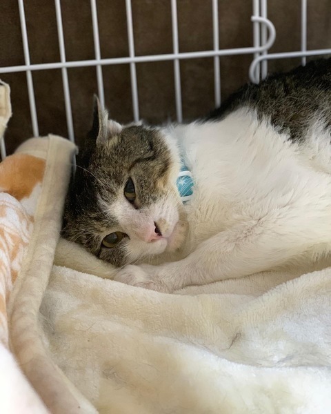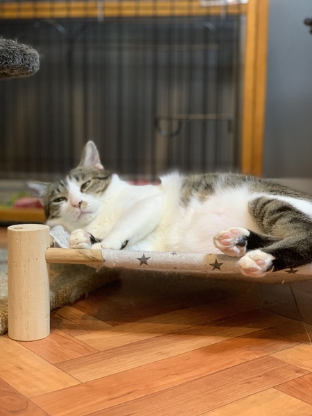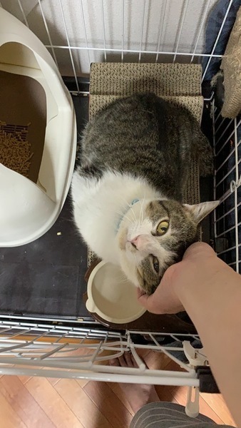 | 特徴(性格など) | 成猫です。推定2歳頃まで外で暮らしていました。年齢は推定で、2018.03.09を誕生日に設定しました。 体重は保護当初から少し増えて5.8キロです。 保護当初はまともに触れないほど威嚇していましたが、今は慣れてナデナデは好きみたいです。 現在ケージでお世話していますが、家の中フリーの練習中です。 元野良猫が故、食への執着が強いです。留守番時間は猫専用部屋かケージで過ごすことを条件とさせていただきます。人の目が届くところではフリーで問題ありませんが、おなかがすくとナイロン袋の音がするもの(食べ物に限らず、トイレ砂も破きます)をあさるので注意が必要です。 食べ物を目にした際の動きは速いため高齢者での対応は困難かと思います。 |