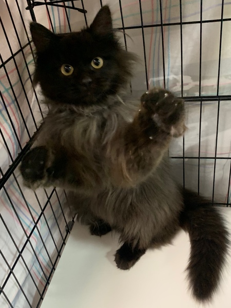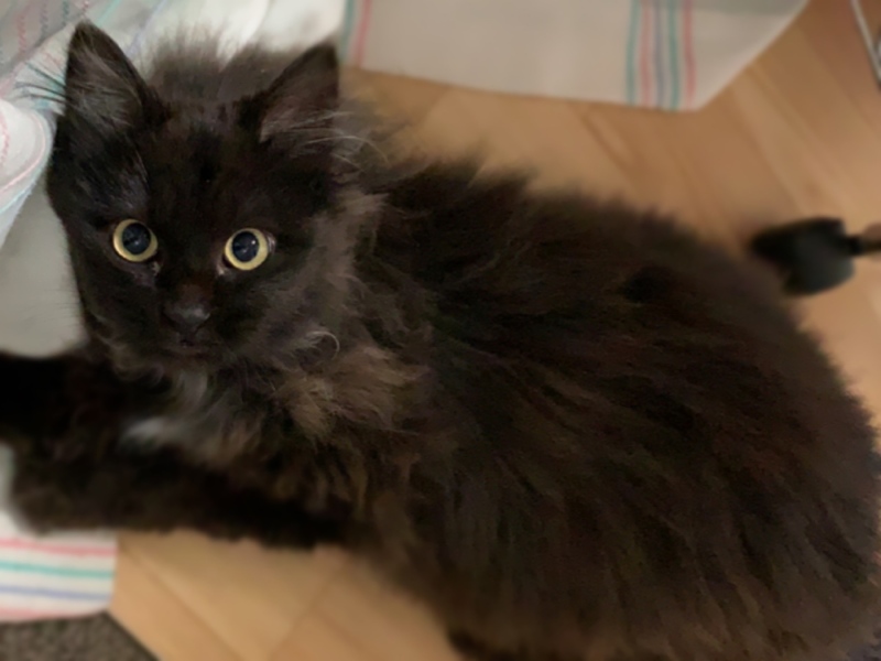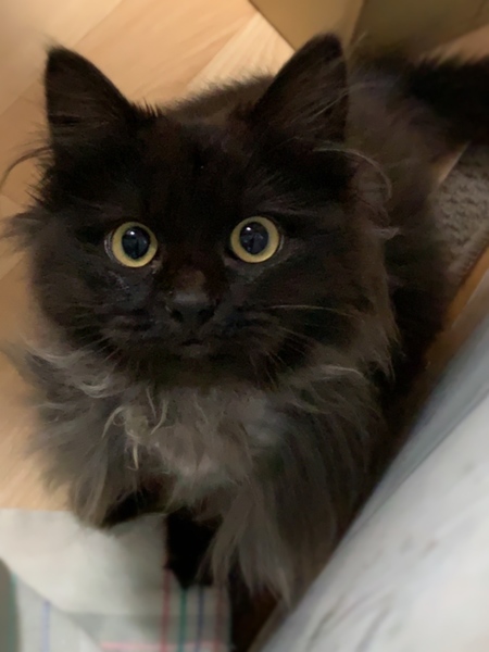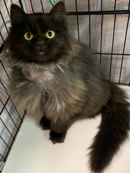 | 特徴(性格など) | 【仮名】フワちゃん 【種類】MIX 【毛色】長毛ブラック 【性別】メス 【避妊】未 【ワクチン】未 【駆虫】未 【血液検査】未 【健康状態】良好 【性格・特徴】野良の子として生活していたため警戒心がありますが、保護して少しずつ人との生活に慣れてきました。ケージの中で過ごしてきましたが最近はケージの外に出たがるり捕まえることは問題ないので一部屋ウロウロして過ごしてます。シャーシャー威嚇することもほとんどなくなりました。嫌なことには猫パンチが飛んできますが、何もなければ穏やかです。遊ぶことも大好きです。寂しいと可愛い声で鳴いてます(^^) トイレは問題なく猫砂を使ってできます。 ※長毛のため毛玉があり少しずつ取れてきて一部脱毛もあります。毛玉が残っています。 ※完全に人馴れはしていませんが、環境が変わることで変化もあるかもしれません。この子のペースに合わせてゆっくりと人馴れしていくことにご理解のある方にお願いしたいと思っています。 |