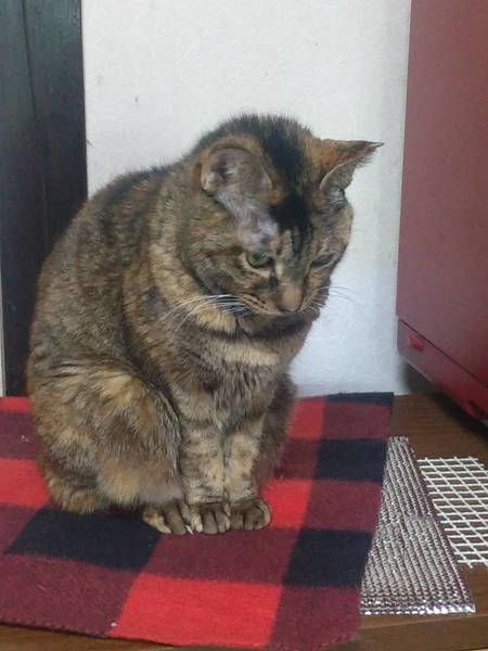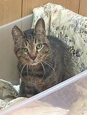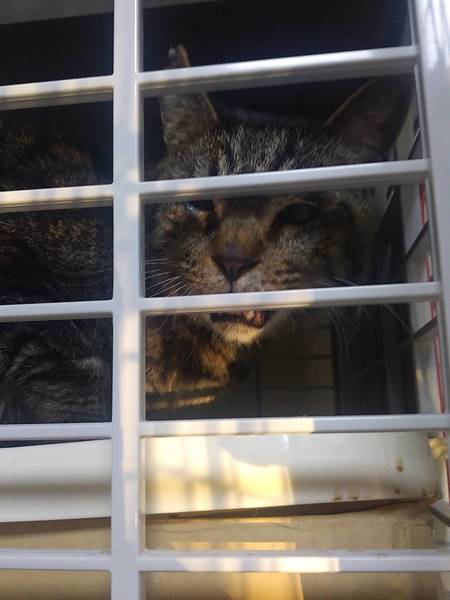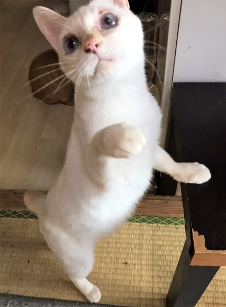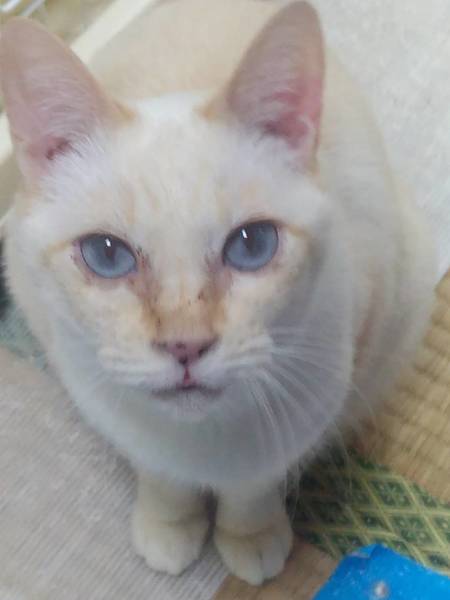 | 特徴(性格など) | ①ダラちゃん オス キジ猫 9歳くらい ボブテイル 甘えん坊で抱っこが大好き 他の子に追い回されていじめられるため現在はケージの中に隔離されています。 でもケージの外に出たいのかずっと鳴いていました。 ②くーちゃん メス サビ 9歳くらい 小柄でとても人懐っこいです。 カギ尻尾、耳カットあり ③あんちゃん メス 白ベースのシャム系MIX 瞳はブルー 8歳くらい ボブテイル 好奇心が旺盛な女の子 アレルギー(?)なのか、涙目になっていて目の周りが赤くなっていました。 ④ムギちゃん オス 色が濃い茶トラ 9歳くらい ボブテイル 抱っこが大好き 初めて会った人の側にもよって来ていたので性格は穏やかそうです。 |
